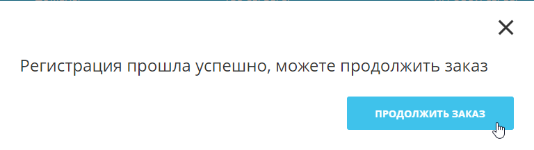 Следующее окно вам сообщит об успешной регистрации, нажмите продолжить.